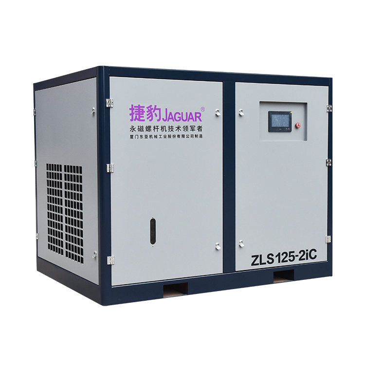 捷豹永磁螺杆机第三代全智能驱动; 双电机双主机串联可分体; 独立双点机易维护; 全智能驱动; 螺旋看空压机两级压缩; 特殊的冷却喷雾设计