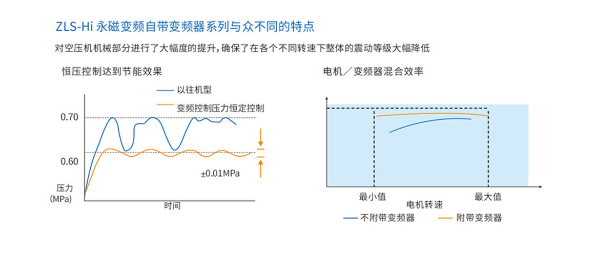 捷豹ZLS-Hi系列搭配IE4永磁变频电机,电机电磁方案大幅优化,电机效率大大提升,因此大幅度降低了用户使用成本,为节省用户使用电费做出了贡献。